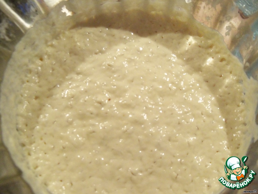 Приготовим опару: 150 г муки, 0,5 чайной ложки дрожжей,