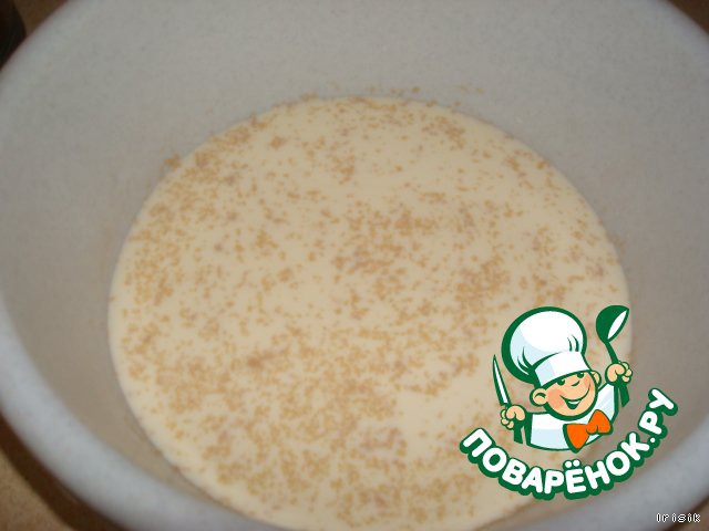 Дрожжи разводим в молоке с сахаром. Оставляем, чтоб растворились и выросла шапочка.