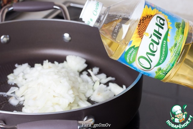 1. Лук мелко порезать. Обжарить на подсолнечном масле до прозрачности.