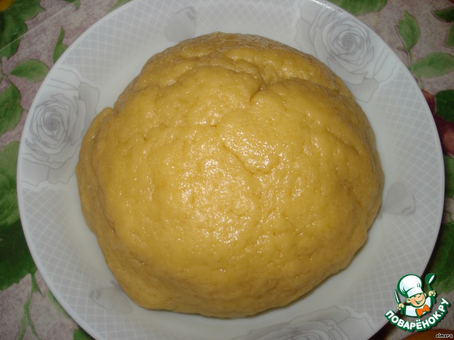 В первую очередь, необходимо размягчить маргарин, оставив его в помещении на пару часов. Мягкий маргарин нарезать кусочками. В кусочки маргарина добавить муку, яйца, сахар, соль, соду, погашенную уксусом, коньяк, все тщательно перемешать и замесить тесто.