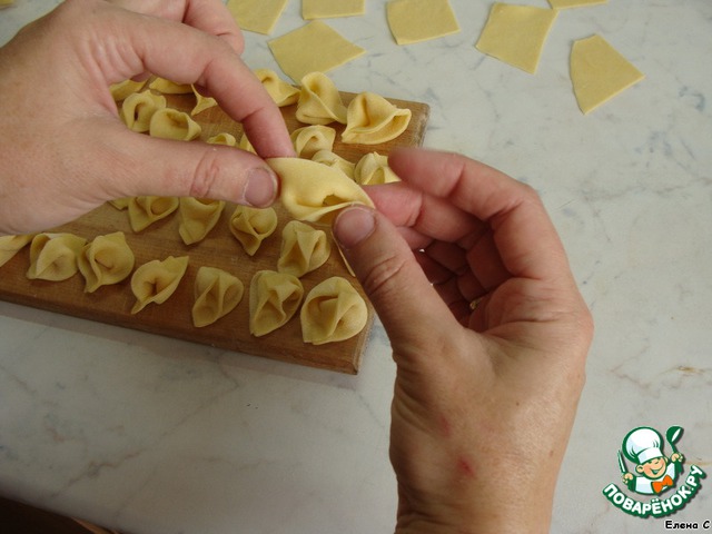 Далее формуем галушки. Описать трудно, но постараюсь. Смысл - соединить внахлест одни противоположные концы квадратиков,