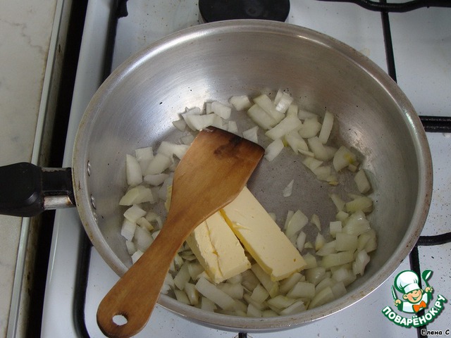 Обжарим лук на сливочном масле до слегка золотистого цвета.