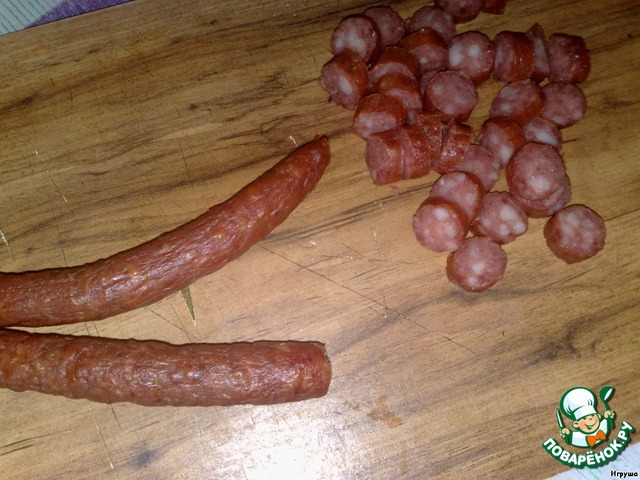 | Ну очень-очень вкусная закуска к пиву и не только... В хрустящем тесте расплавившийся сыр и поджаренные охотничьи колбаски. Ммммммм.... Объедение! |