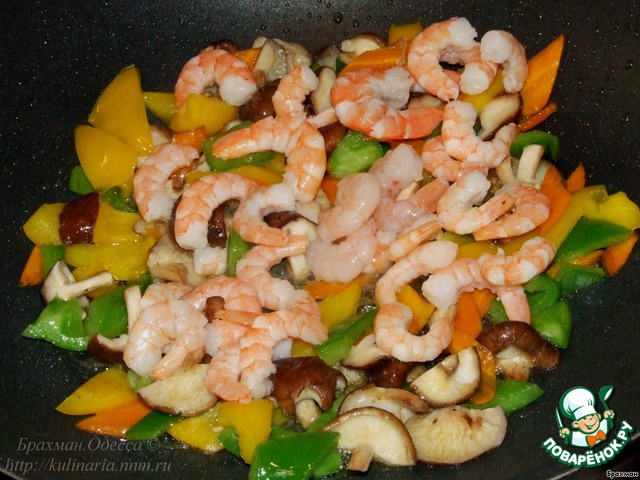 - Через несколько минут, добавляем креветки.