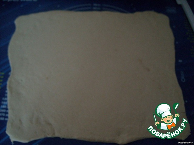 Вынимаем тесто из холодильника и делаем по принципу слоеного: раскатать тонко, сложить в 4 слоя, раскатать и так повторить 3 раза.