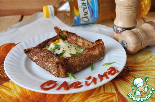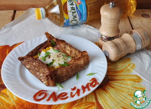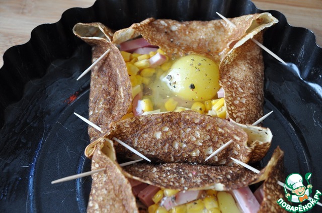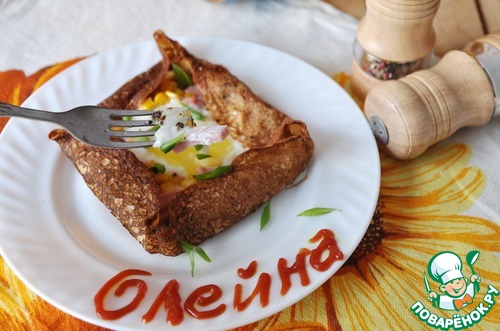 Для приготовления яичницы в блинах понадобится блинов соответственно по числу порций.