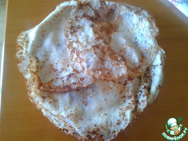 Для блинчиков: из указанных продуктов я пекла блинчики по этому моему рецепту "Нежнейшие блинчики на курином бульоне" http://www.povarenok .ru/recipes/show/926 91/
