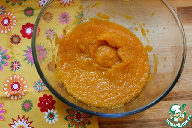 Тыкву порезать на не большие кусочки, влить 4 ст. л. растительного масла и тушить на маленьком огне до готовности. Далее пюрировать блендером.