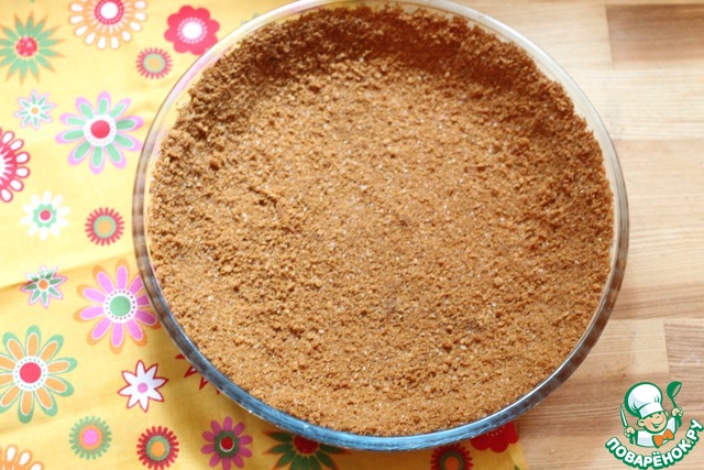 Полученную основу утрамбовать в форму 24см. И выпекать в заранее разогретой духовке 10 минут.