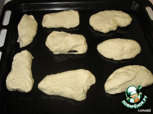 После увеличения подмесите его еще раз (руки должны быть смазаны маслом) и разделите на 6-8 частей.
