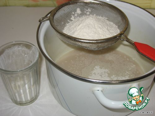 Добавить 1 стакан просеянной муки. Поставить в теплое место для появления шапочки.