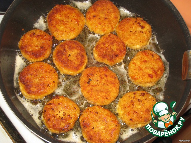 Чайной ложкой брать тесто, обваливать в панировочных сухарях и обжарить с двух сторон.