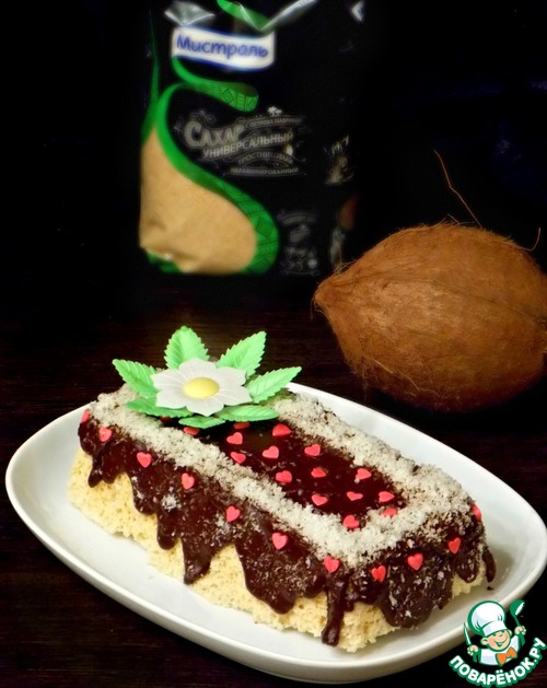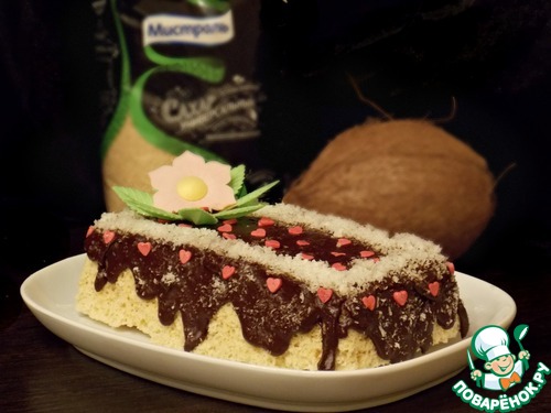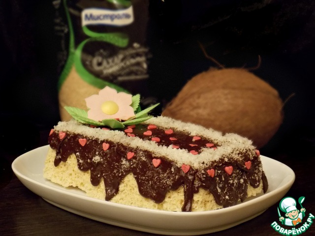 Дать остыть и можно украшать на ваше усмотрение. Я использую растопленный шоколад и кокосовую стружку.