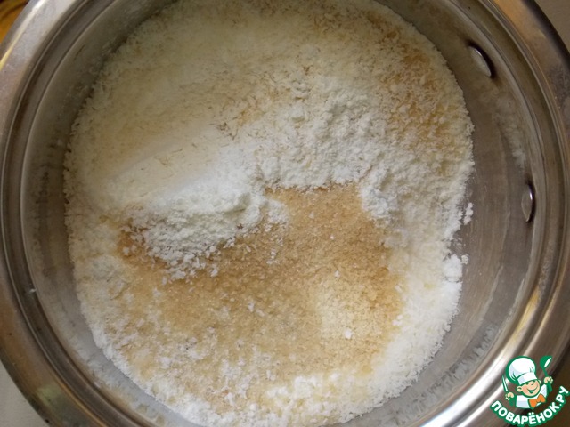 Смешать сухие и сырые ингредиенты отдельно друг от друга.