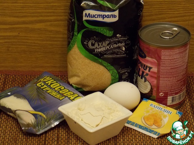 Наши ингредиенты. Я брала кокосовое молоко уже готовое, но Вы можете сделать его сами или заменить на простое молоко. Хотя с кокосовым аромат намного сильнее.