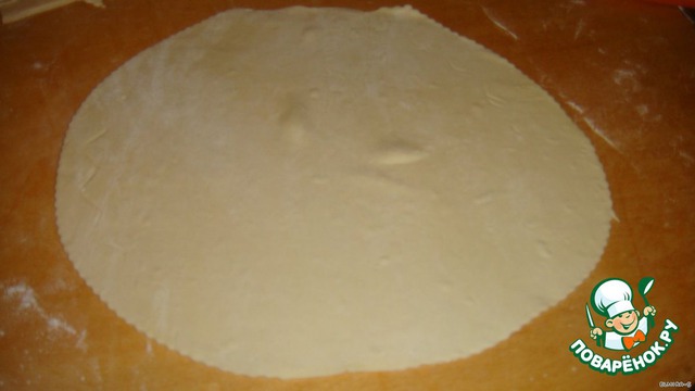 Форму застелите пекарской бумагой и переложите туда тесто ввиде круга