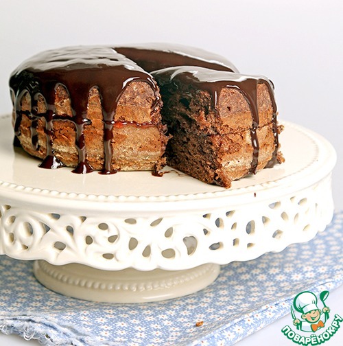 Теперь собираем пирог и смазываем сверху джемом, пропущенным через сито.