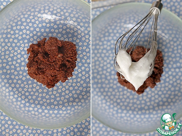 Отдельно взбете белки до густой пены, добавьте треть в тесто и перемешайте - тесто пока очень густое, и этот шаг поможет нам его немного размягчить.
