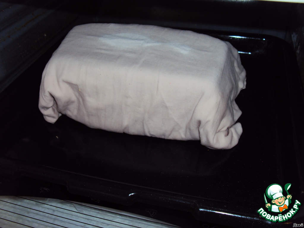 Пеленку смачиваем в воде и хорошенько выжимаем её и заворачиваем хлеб во влажную пеленку. Отправляем хлебушек в духовку, до тех пор, пока пелёнка не станет полностью сухой.