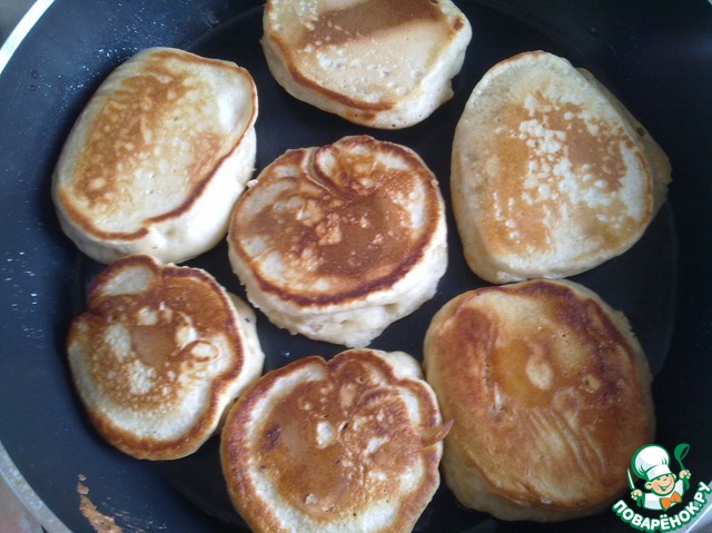 На предварительно разогретую сковородку, смазанную небольшим количеством растительного масла, выложите тесто, формируя оладушки. Переворачивайте их на другую сторону через минуты две.