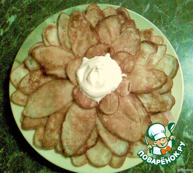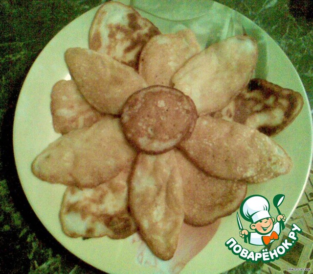 (если тесто наливать ближе к краю, оно как раз будет растекаться по краю сковороды.. и будут получаться вот такие красивые оладушки!)