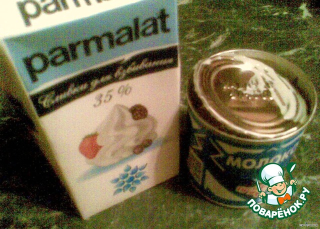 А в это время .. берём сливки (давно купила, не знала, куда употребить)) .. и сгущённое молоко ...
