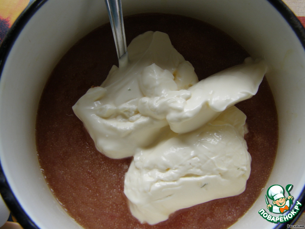 Икру отделить от пленки. Это можно сделать через сито. Я отделяла вручную, а мешала массу миксером, то, что не выбрала руками, сняла потом с лопаток.