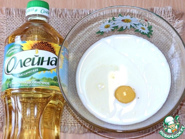 Для приготовления блинов соединить молоко, яйцо, соль, сахар, растительное масло.