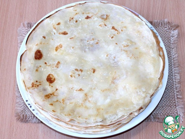 | Блины, приготовленные по этому рецепту, получаются тонкими и нежными. Начинка выходит ароматной и сочной. |