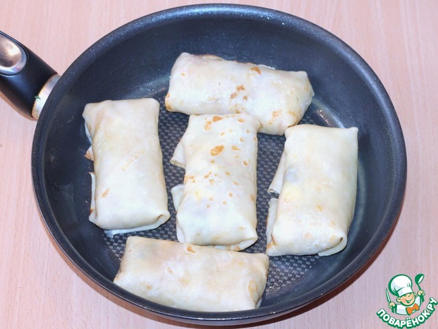 Обжарить конвертики с обеих сторон на смеси сливочного и подсолнечного масла (1:1) до золотистого цвета.