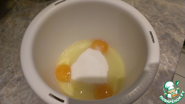 Взобьём миксером яйца с сахаром, ванильным сахаром и солью.
