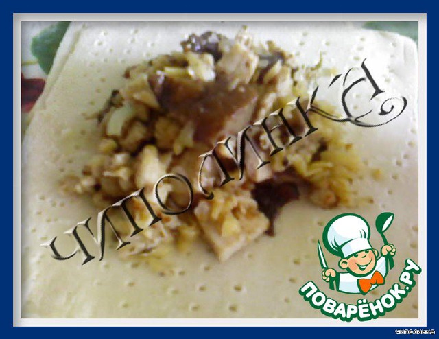 Аккуратно защипать края, чтобы начинка не вывалилась.