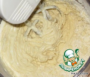 добавляем муку смешанную с содой. тесто должно быть, как сметана.