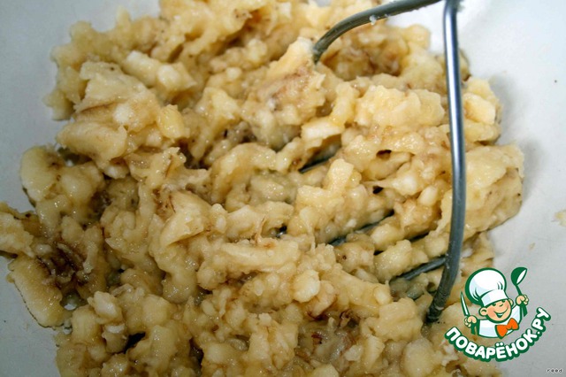Бананы я измельчила при помощи давилки для картофеля.