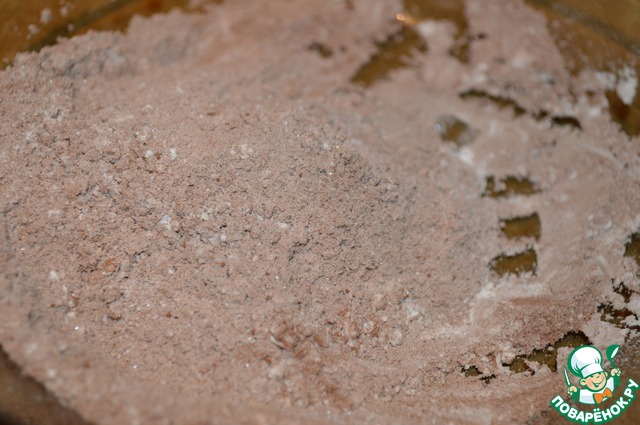 Муку просеиваем и смешиваем с какао, сахаром и дрожжами.
