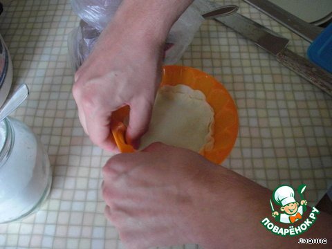 Раскатать вторую пластину теста, нарезать той же или меньшей по диаметру чашей круги.