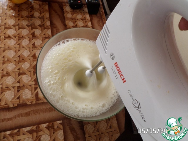 взбиваем до тех пор, пока масса не увеличится в объеме и не побелеет