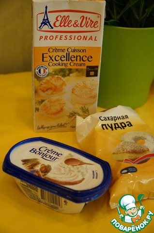 Сливки, сахарную пудру и крем- бонжур взбиваем.