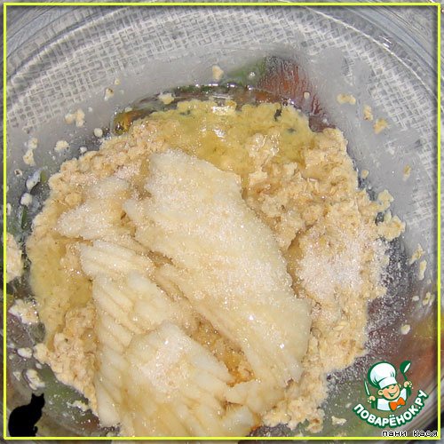 к набухшим хлопьям добавить грушу, белок 1 яйца, сахар - 1 ст л, и соль по вкусу, вымешать до однородной массы