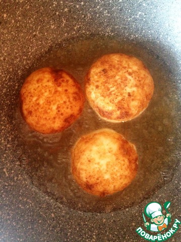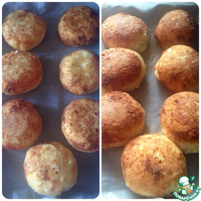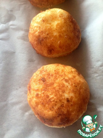 Делаем сырник 80-100 граммовый, достаточно большой, чтоб не прожарился внутри.