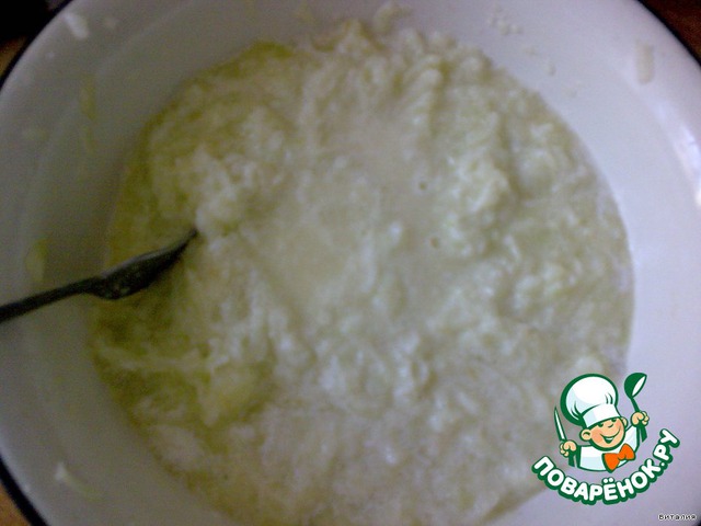 Кабачок натереть на терке, добавить в него сметану и яйца, перемешать.