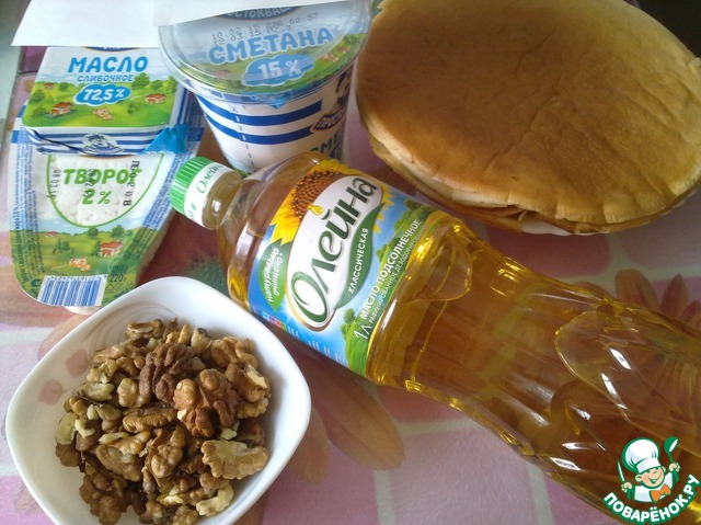 Подготовьте ингредиенты для твворжно-ореховой начинки.