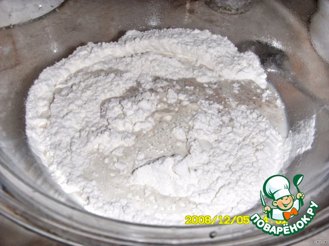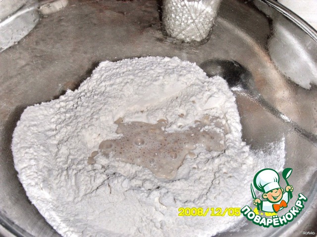 муку просеять, сделать углубление, всыпать дрожжи и 1 ч.л. сахара,