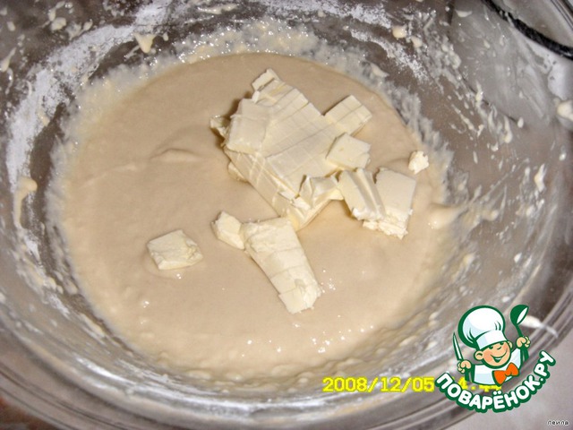 Вмешать масло, вымесить 10 мин(имеется в ввиду в ХПечке) Поставить в тёплое место подходить 1,5 часа,