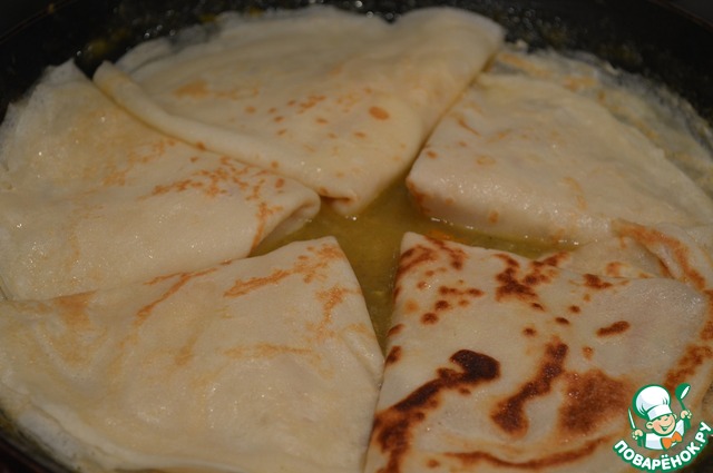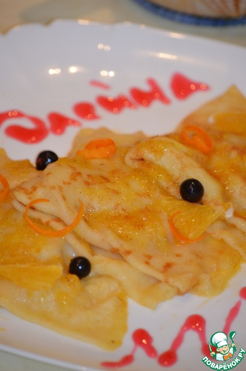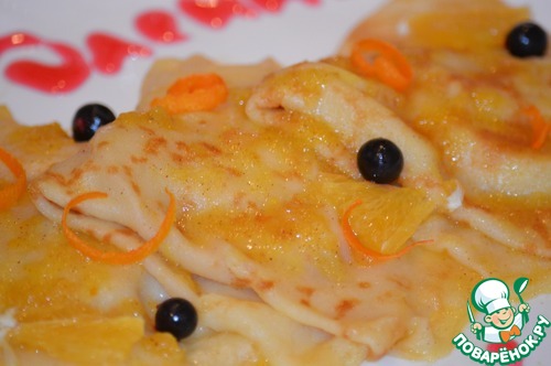 Блинчики с яблочной начинкой в апельсиновом соусе