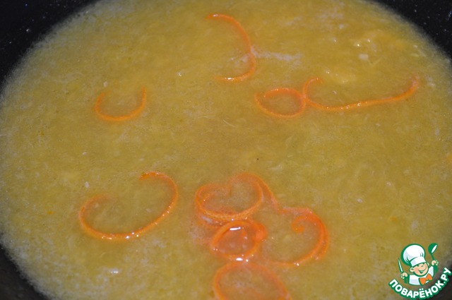 В сковороде распускаем сливочное масло, добавляем коричневый сахар, апельсиновый сок и цедру. Доводим до кипения.