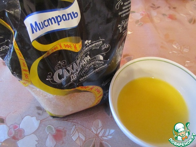 Приготовить коричневый сахар. Сливочное масло растопить.
