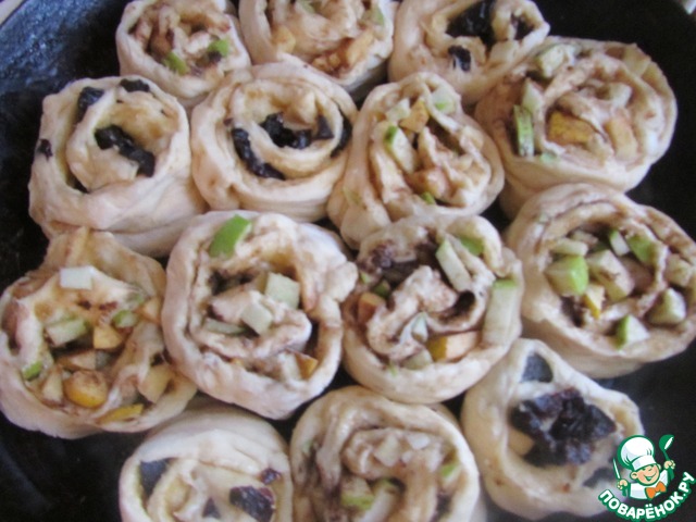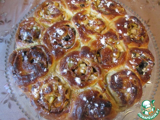 Этот пирог легко разделяется на булочки, поэтому его удобно кушать. можно в одном пироге соединить несколько начинок, я например один пласт сделала с черносливом. Это дело фантазии кулинара)