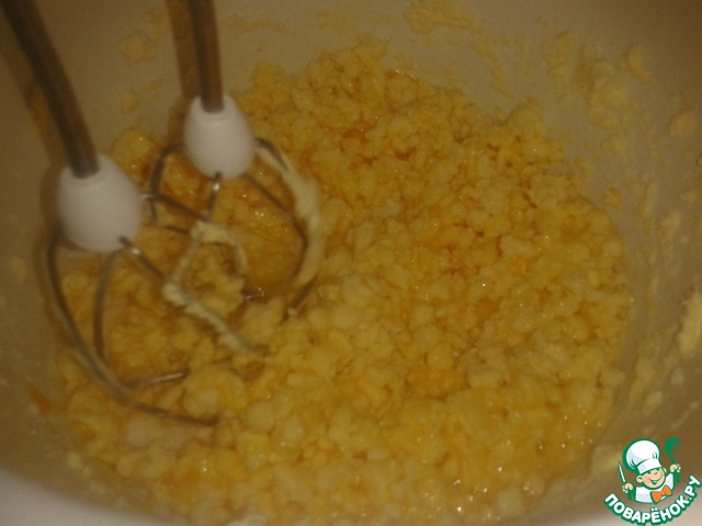 Взбить масло с сахаром, добавить яйцо. Хорошенько взбить.