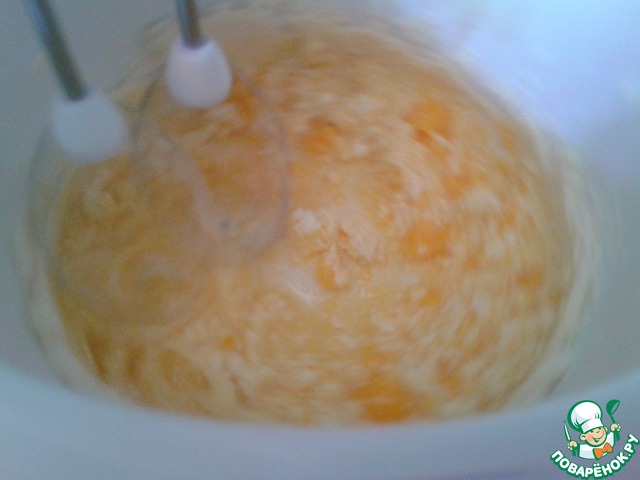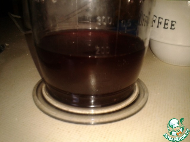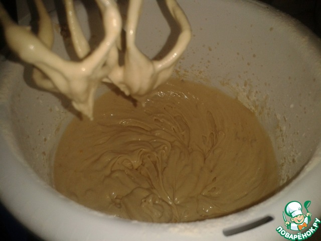 Добавить 200 мл сиропа и продолжить взбивать. Оставшийся сироп оставляем для глазури.